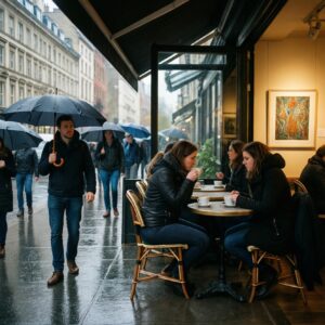 Чтобы решить, куда сходить в дождь, выбирайте места, где вы не зависите от улицы: кофейни...