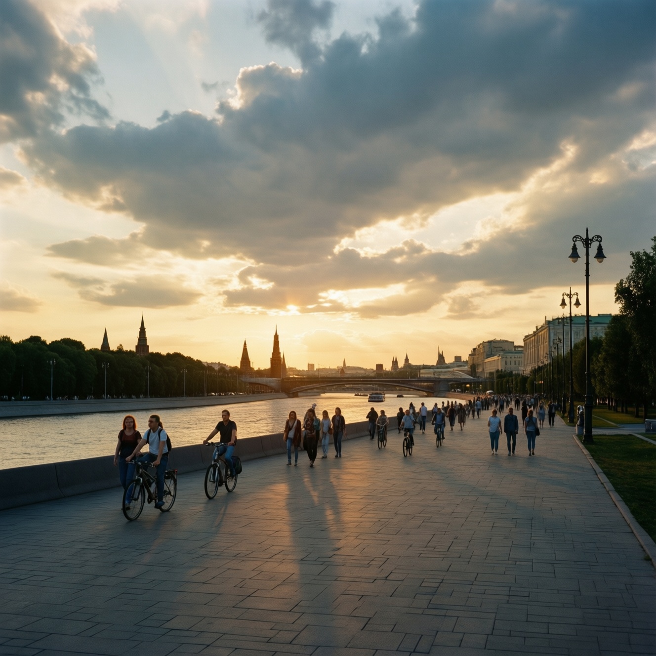 Чтобы понять, какие московские набережные где гулять и где комфортно кататься, выбирайте участок под задачу: широкий променад для пешей прогулки по набережной Москва, отдельные дорожки для велосипеда/роликов и точки с открытым горизонтом для заката. Планируйте выход за 30 минут до заката и держите запасной маршрут на случай ветра, дождя и плотного потока.